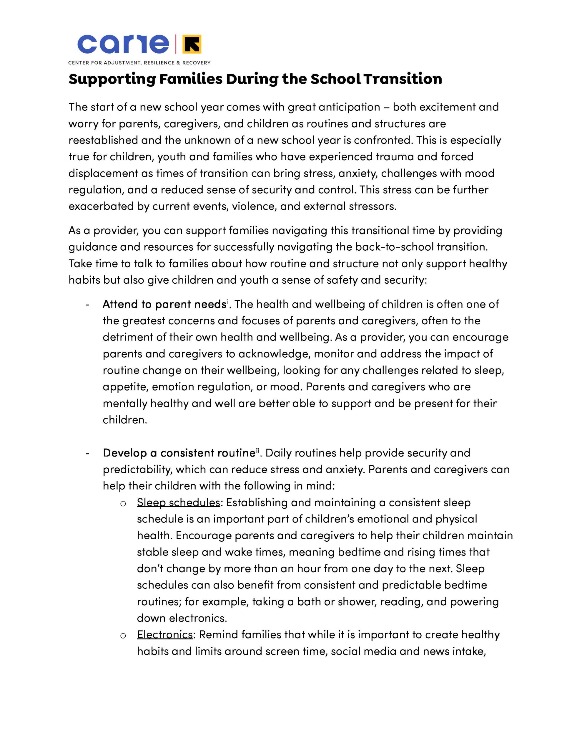 (CARRE Sept 2025 Newsletter) As we get settled in a new school year, providers can help families establish and maintain helpful routines, habits, and plans as part of their trauma-informed care practice. You can find the article linked below to learn more!